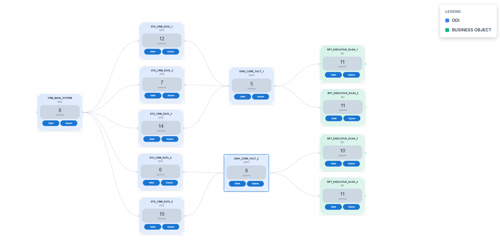 Karmaşık ETL süreçlerinde kaybolmayın. Verininiz hangi kaynak sistem, tablo ve kolonlarından beslendiğini görebileceğiniz gibi, ETL'deki hangi son adıma ve hangi raporlarda kullanıldığına kadar uçtan uca resmi görebilirsiniz. Hem tablo hem kolon seviyesinde görsel olarak veri akışlarnızı takip edin.